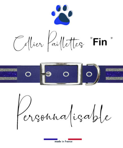 Collier pour chien biothane Bi-goût bleu marine et argent pailleté