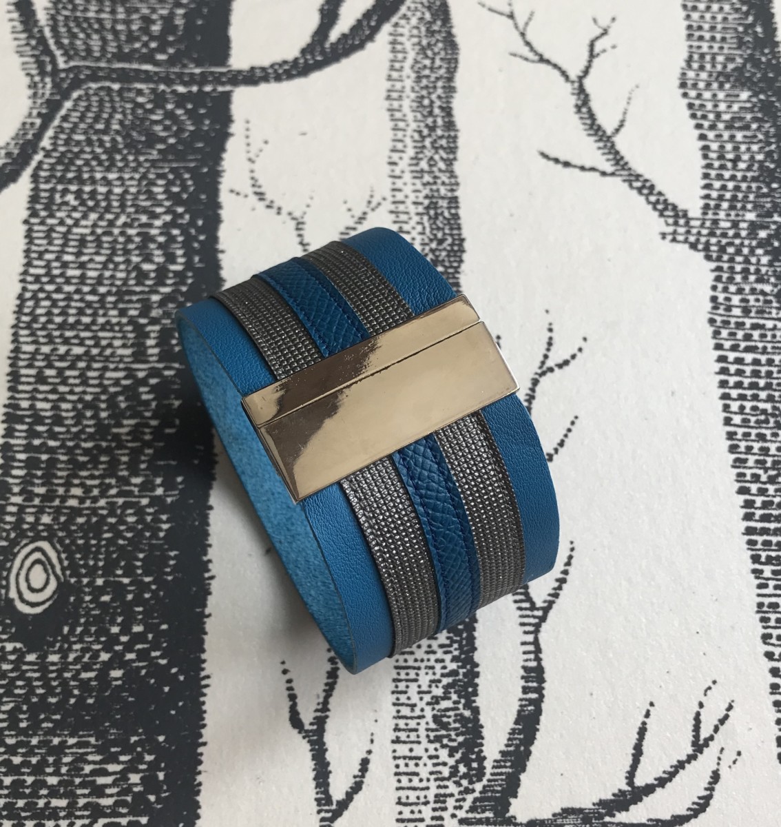Bracelet cuir grainé manchette large bleu ciel. Élégant bracelet cuir manchette, fermoir avec aimant. Artisanat Français. Made in Lyon. Tous les bracelets sont personnalisables, sur mesure choisissez vos couleurs.