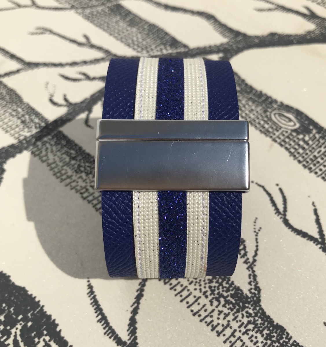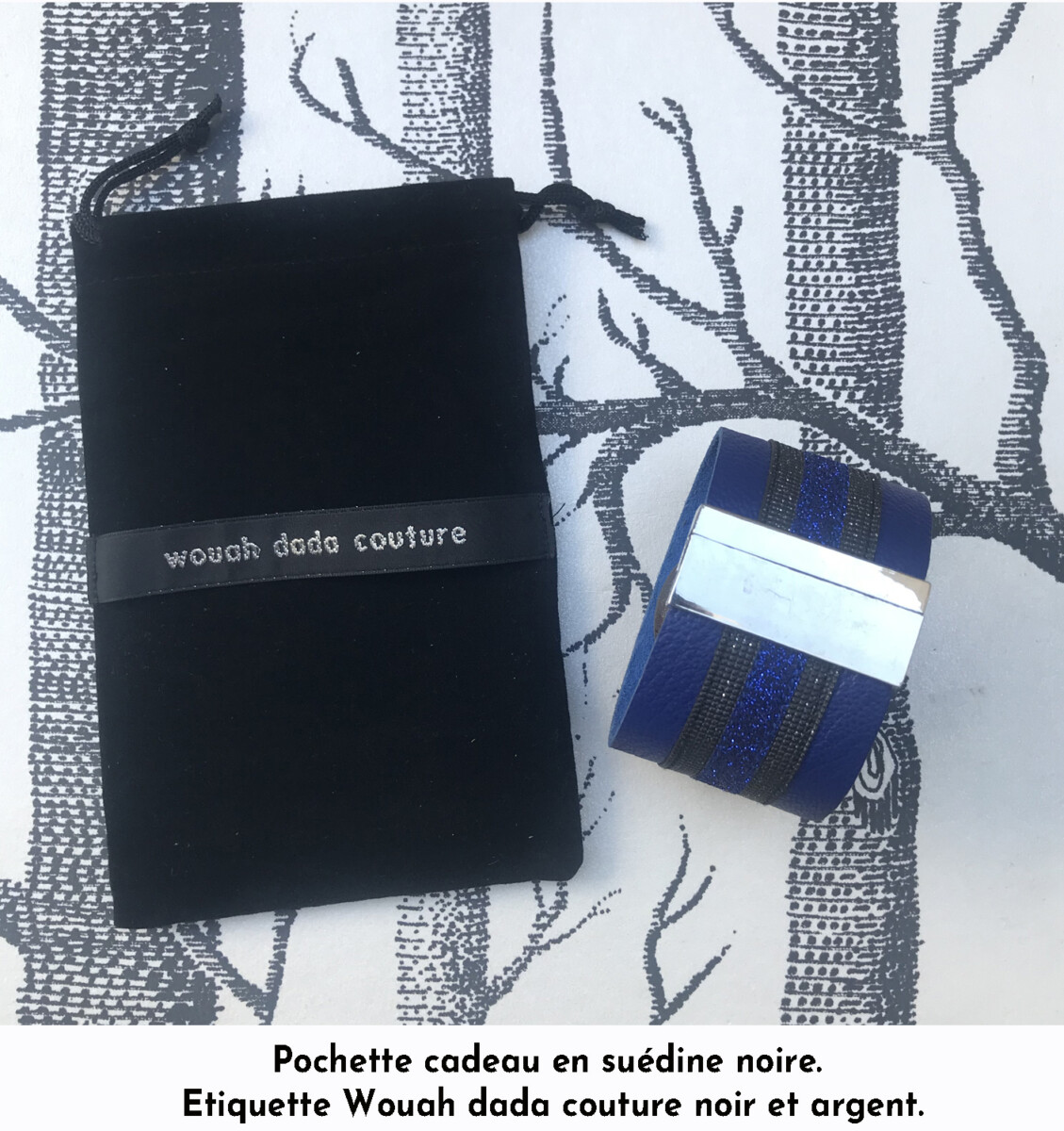 Bracelet cuir manchette cuir bleu, aimanté. Ce bijou vous accompagnera en journée comme en soirée. Choisissez l’ artisanat et la fabrication Française. Avec toute la gamme des produits wouah dada couture, composez votre ensemble