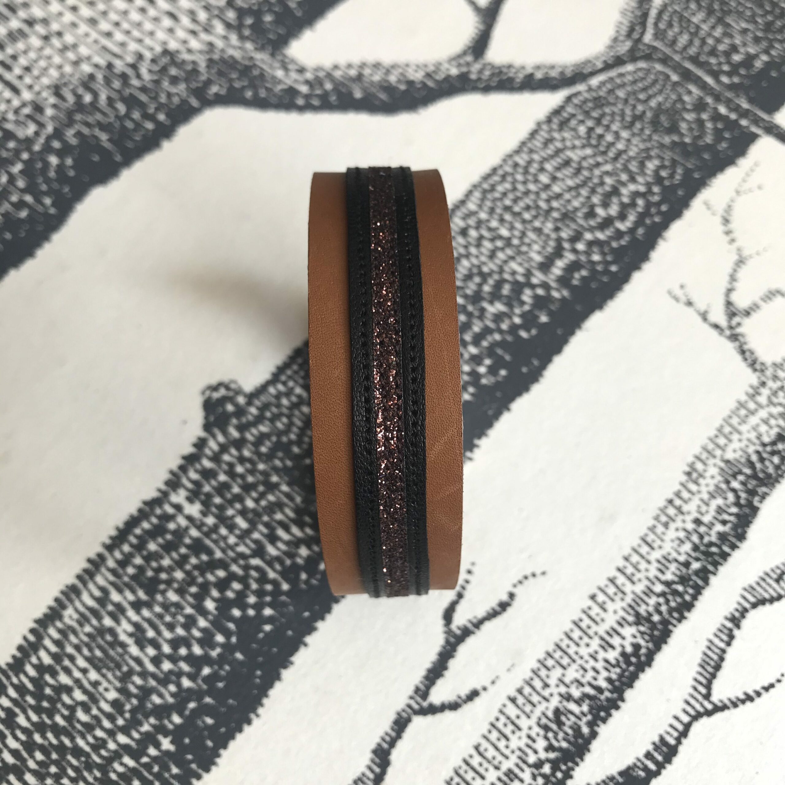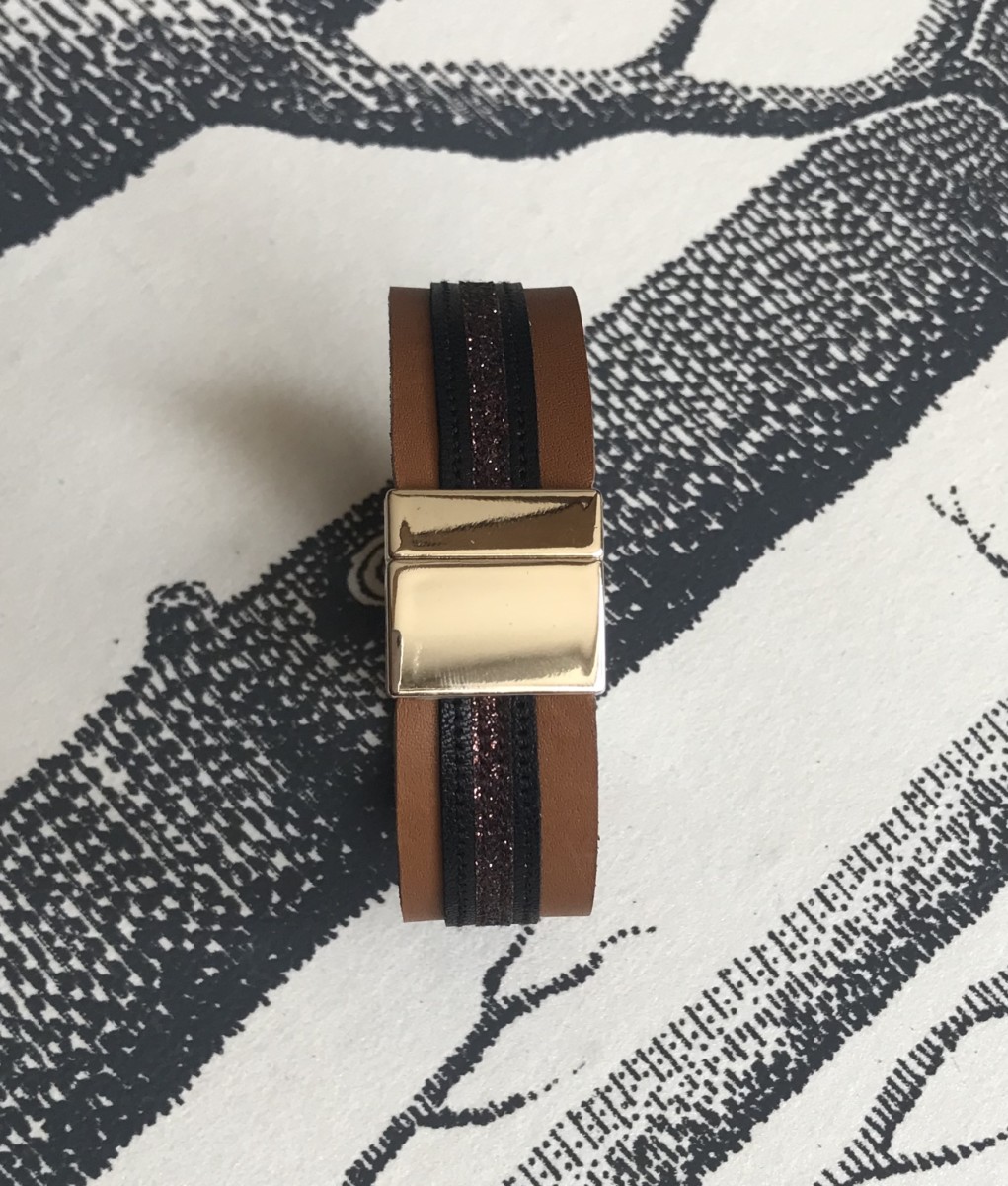 Bracelet cuir manchette havane et paillettes chocolat . Cavalières ayez du style à cheval comme à la ville. Bracelet cuir personnalisables, choisissez vos couleurs!