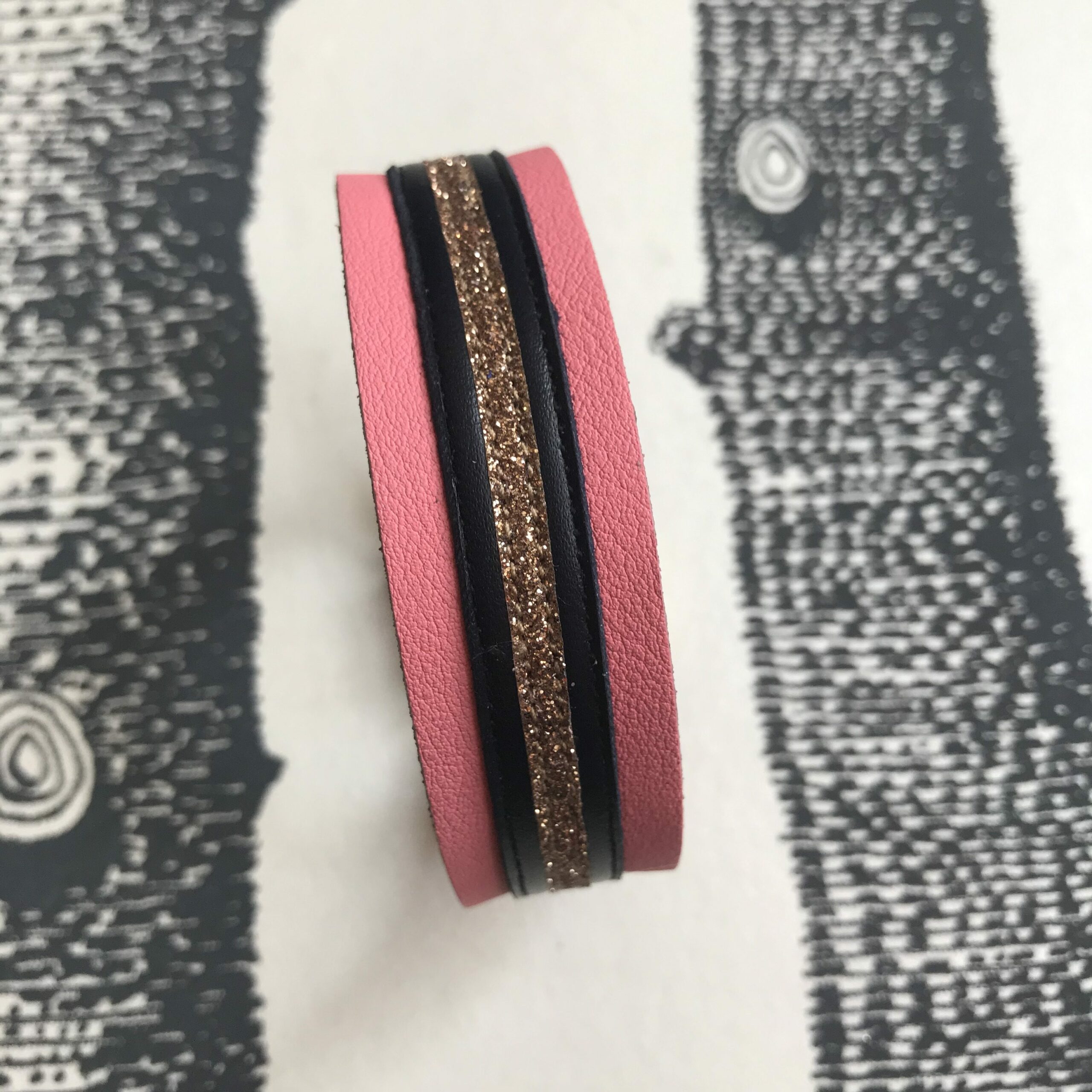 Bracelet cuir manchette rosenoir paillettes or. Cavalières ayez du style à cheval comme à la ville. Bracelet cuir personnalisables, choisissez vos couleurs!