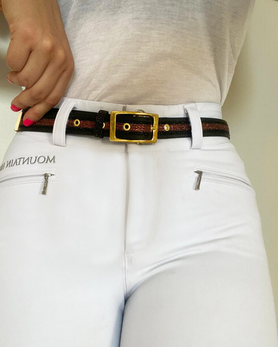 Ceinture équitation noire à paillettes noires et chocolat boucle dorée