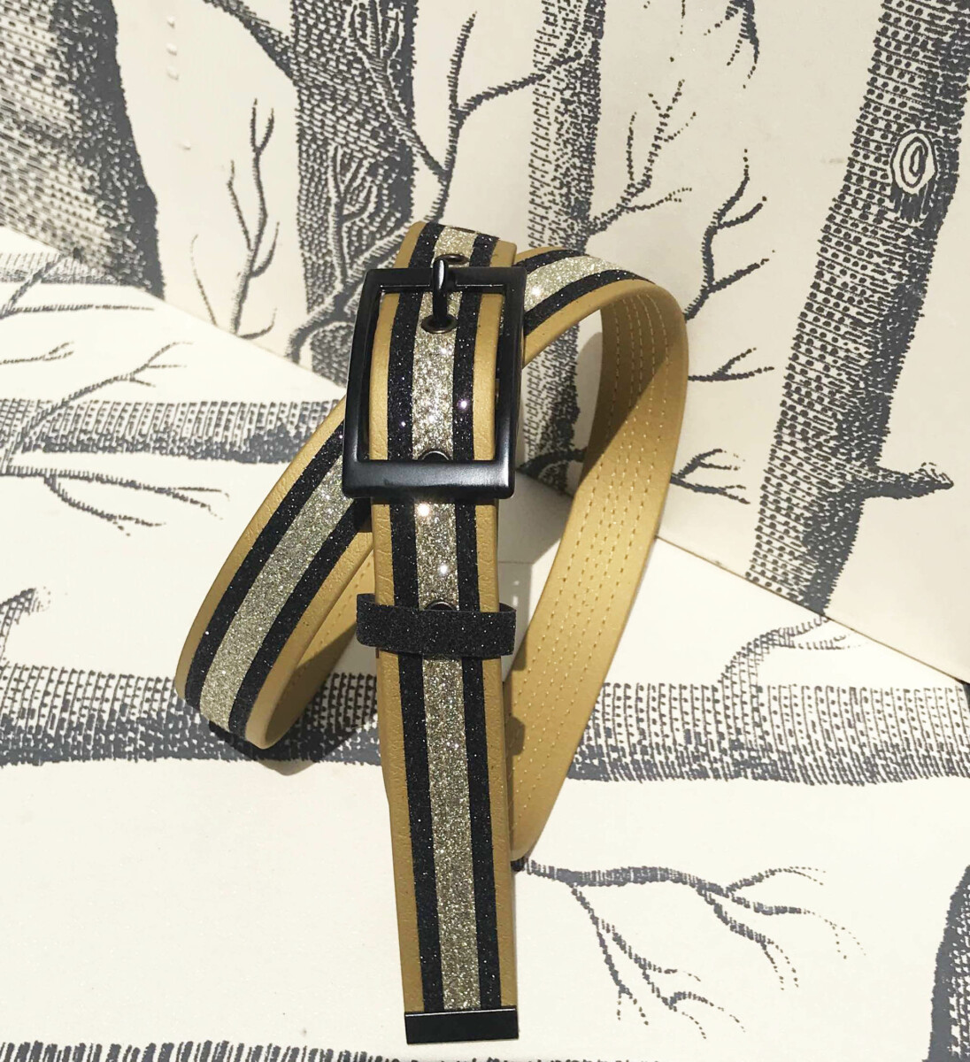 Ceinture équitation or en biothane et à paillettes noires et champagne ![]()