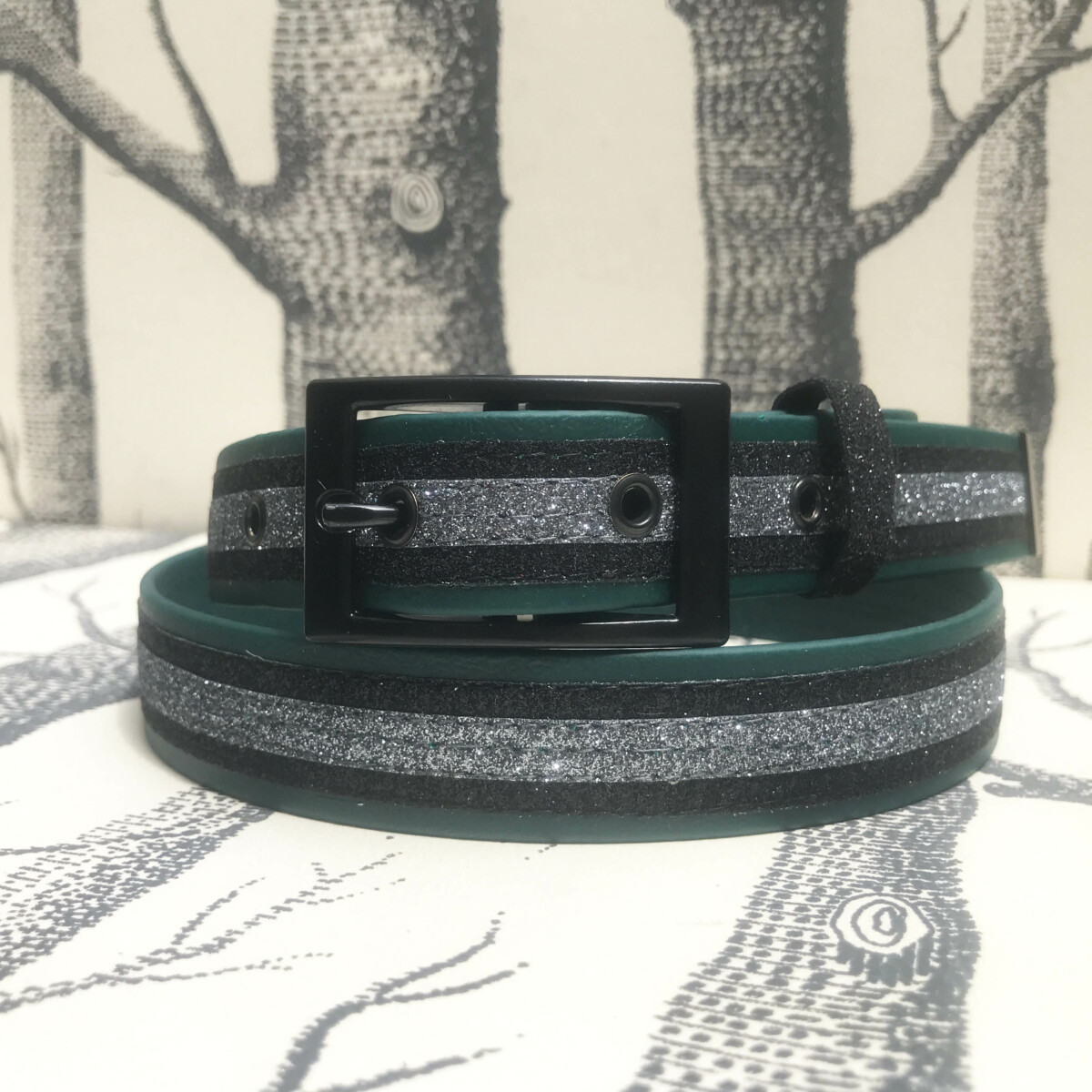 Ceinture équitation en biothane vert à paillettes noires et gris foncé ![]()