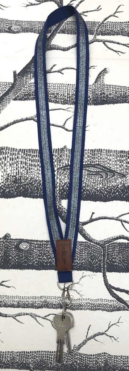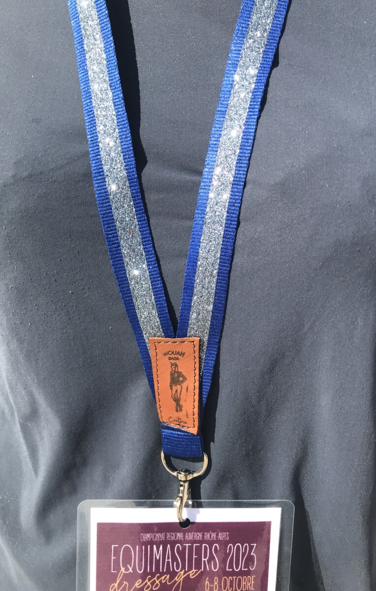 Dragonne- tour de cou bleu à paillettes argent foncé pour clé, badge, téléphone