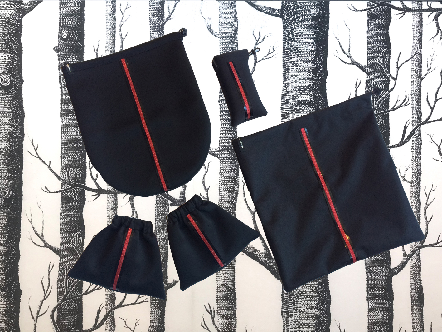 "Maxi" mini housse 18 x 10 cm, housse de bombe L32 x H41, Housse guêtres L39cm x H41cm, housses étriers L 24cm x H 19cm