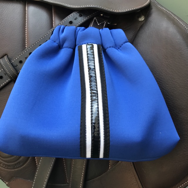 Housses d’étriers pratiques et jolies pour protéger vos étriers et votre selle – ou protéger vos tibias et votre voiture si vous ne relevez pas les étriers sur votre selle- grâce à l’épaisseur du tissu Scuba style néoprène.