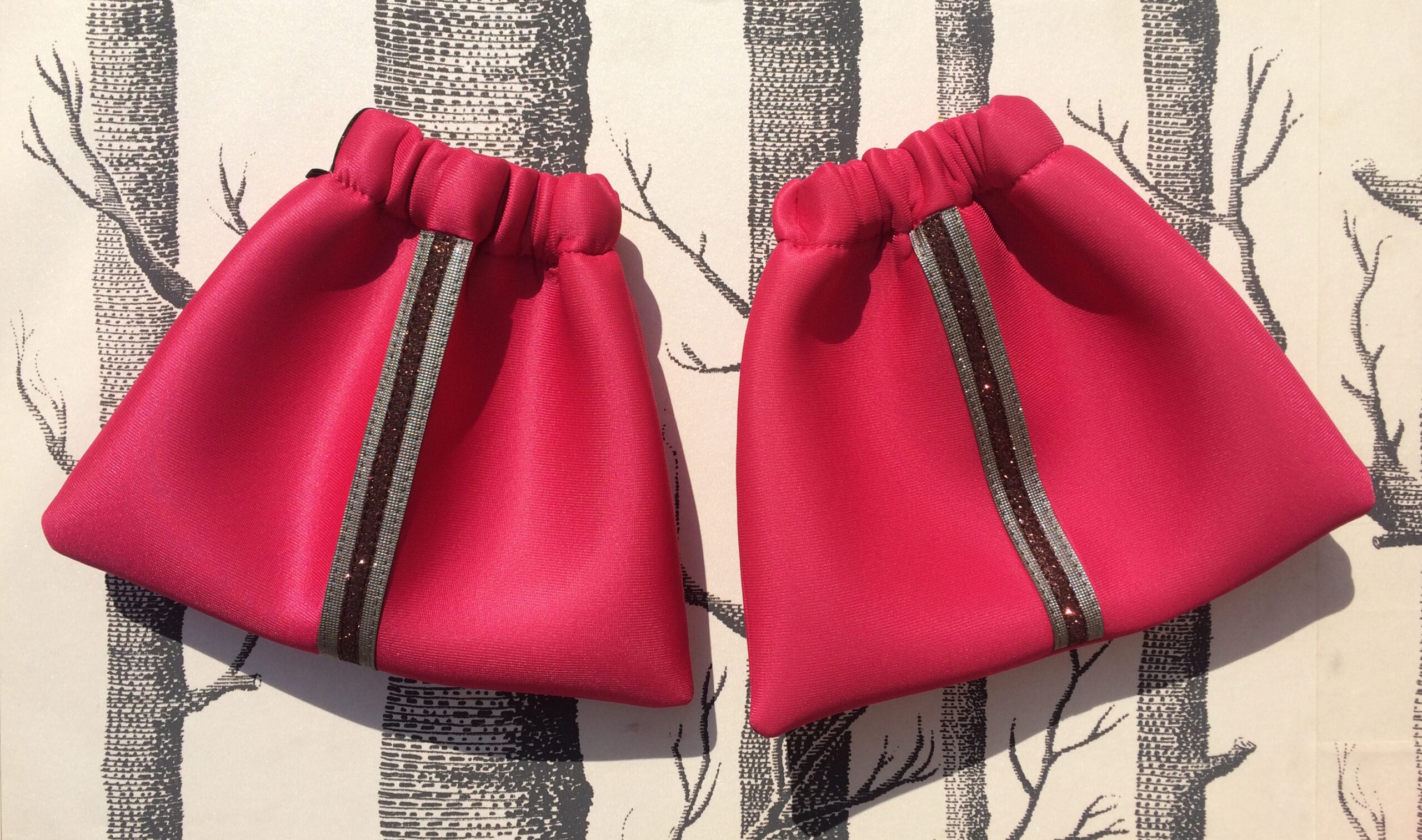 Housses d’étriers pratiques et jolies pour protéger vos étriers et votre selle – ou protéger vos tibias et votre voiture si vous ne relevez pas les étriers sur votre selle- grâce à l’épaisseur du tissu Scuba style néoprène.