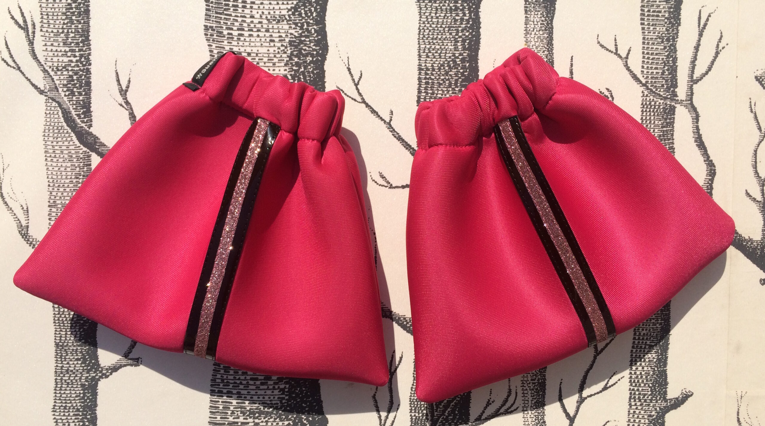 Housses d’étriers pratiques et jolies pour protéger vos étriers et votre selle – ou protéger vos tibias et votre voiture si vous ne relevez pas les étriers sur votre selle- grâce à l’épaisseur du tissu Scuba style néoprène.