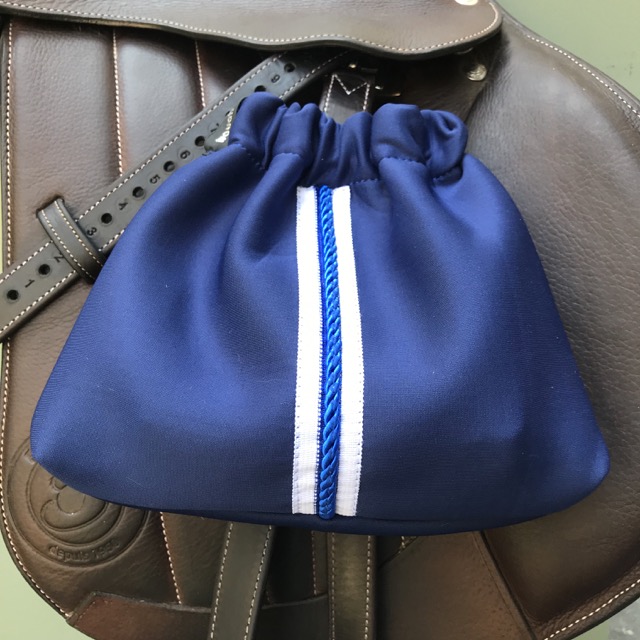 Sac d’étriers bleu marine, pratiques et jolis pour protéger vos étriers et votre selle grâce à l’épaisseur du tissu Scuba style néoprène. Protège des zones de frottements sur les quartiers. À utiliser en longe, pendant le transport et le stockage de votre selle. Les housses se glissent facilement sur les étriers grâce à leur fermeture élastique.