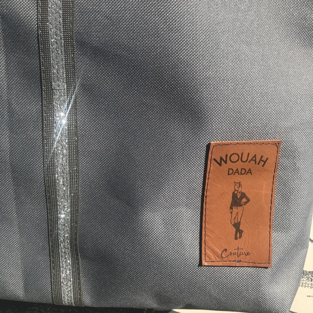 L’étiquette en cuir est découpée puis tamponnée au logo Wouah dada couture.