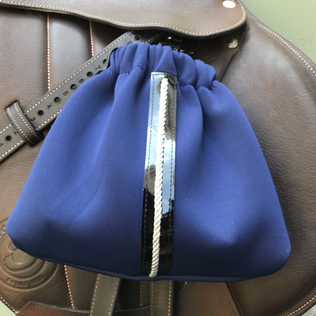 Sac pour étriers bleu marine pratiques et jolies et personnalisables pour protéger vos étriers et votre selle – Protège des zones de frottements sur les quartiers. À utiliser en longe, pendant le transport et le stockage de votre selle. Les housses se glissent facilement sur les étriers grâce à leur fermeture élastique.