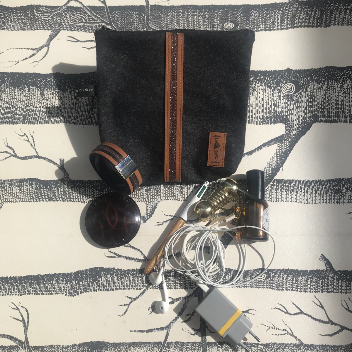 Trousse en feutre de laine. Faites vous un cadeau personnalisé! Rangez tous vos accessoires de femme active dans cette trousse modèle unique (maquillage, crayons, chargeur de téléphone..).