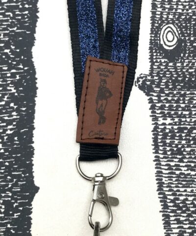 Dragonne- tour de cou noir à paillettes bleu nuit pour clé, badge, téléphone