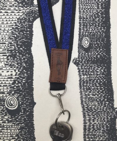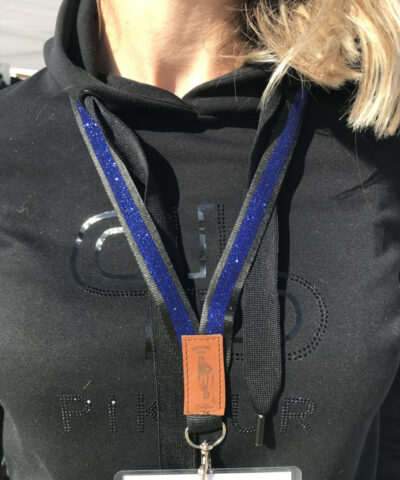 Dragonne- tour de cou noir à paillettes bleu roi pour clé, badge, téléphone