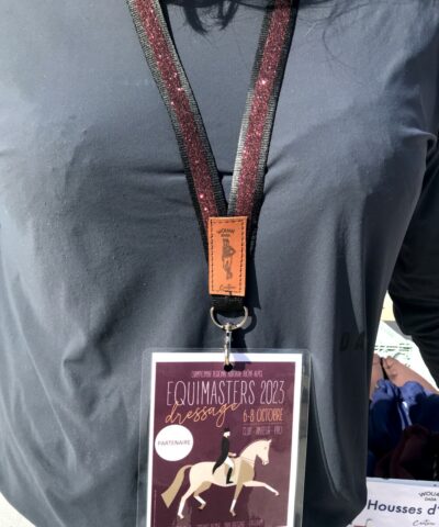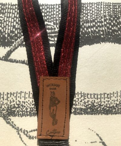 Dragonne- tour de cou noir à paillettes burgundy pour clé, badge, téléphone