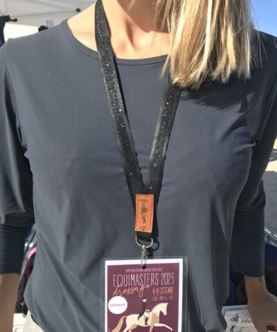 Dragonne- tour de cou noir à paillettes silver pour clé, badge, téléphone