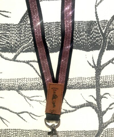 Dragonne- tour de cou noir à paillettes or cuivré pour clé, badge, téléphone